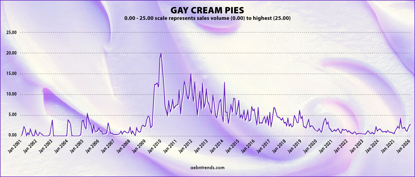 This content had its strongest years between 2003 and 2009. It declined substantially between 2016 and 2022 but in recent years it has shown a mild resurgence.