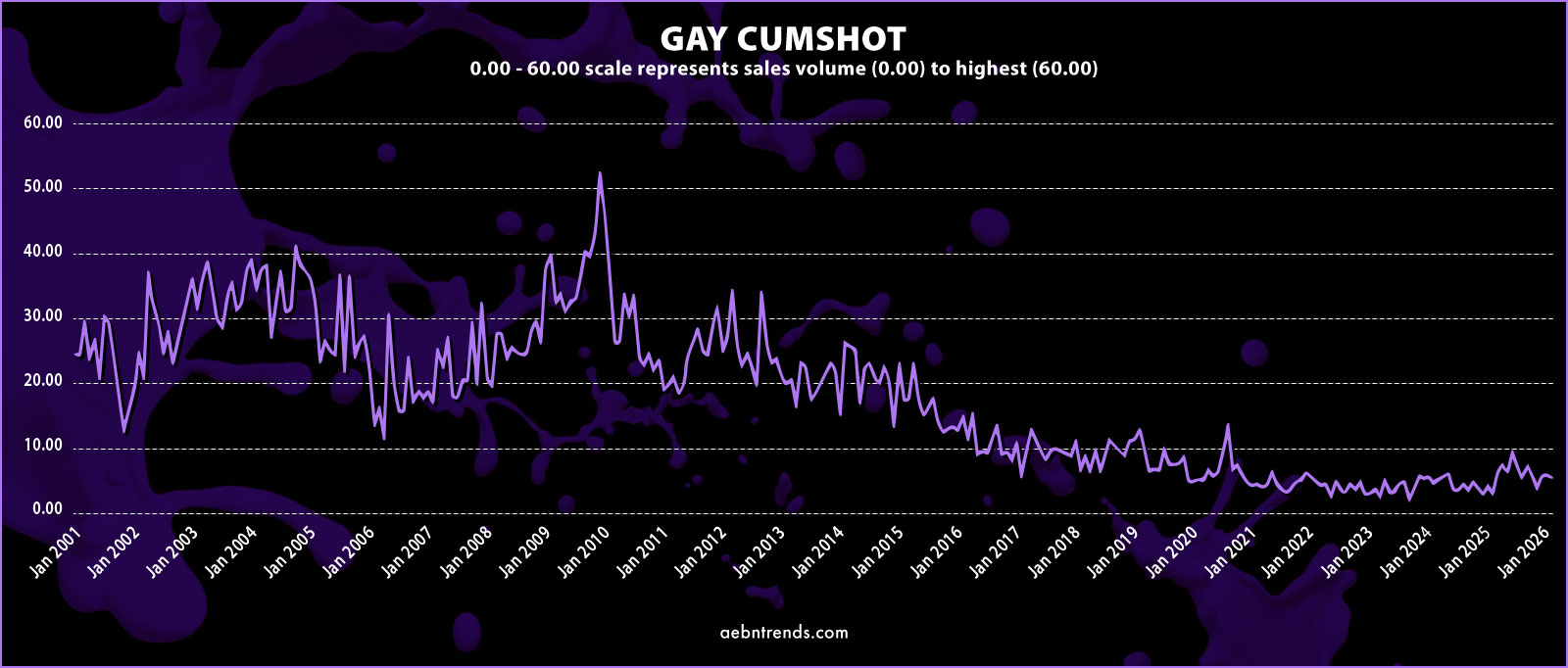 Straight Cum Shot – Cum shots in straight porn still has its fascination. The numbers are steady though they have declined from their peaks in 2006. This content still has remarkably high months as recently as late 2025. While it is a staple of modern porn it does have its devotees.