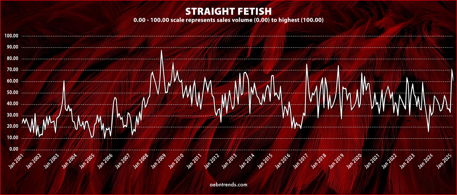Straight fetish content has been consistent in its general popularity since 2008. It has been in the top 10 most popular categories of content most every year over the last decade.